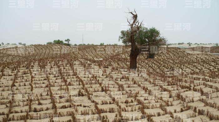 为了克服风沙困扰,新疆硬是一个格子、一个格子地在沙漠里种出绿洲。