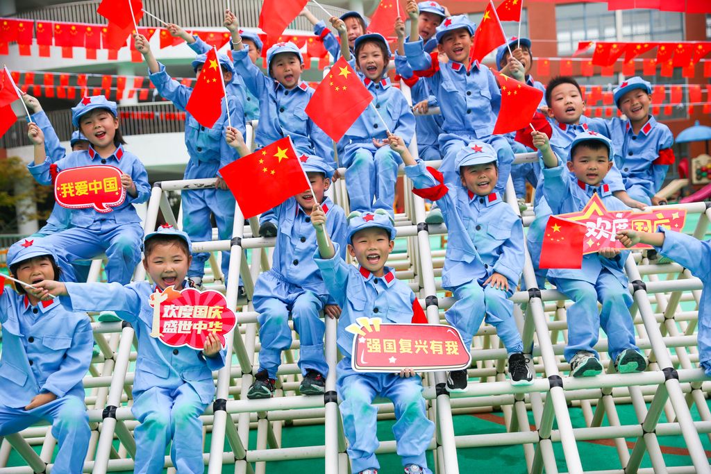 2025年9月26日,江苏南通,如皋市下原镇下原幼儿园开展“童真迎国庆 红色润童心”主题爱国教育活动。通过“重走长征路”、歌唱祖国、与国旗同框、为祖国送祝福等形式,激发幼儿热爱祖国的情怀。