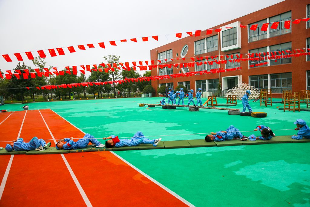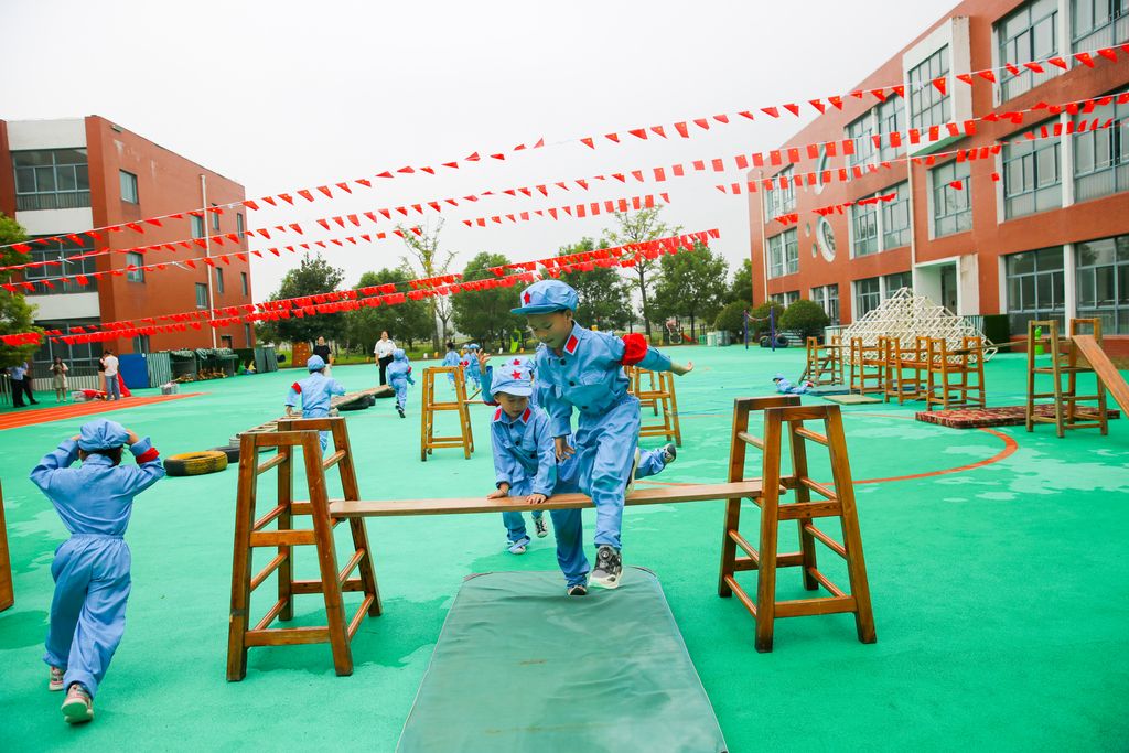江苏南通:孩子们体验模拟长征 迎接国庆
