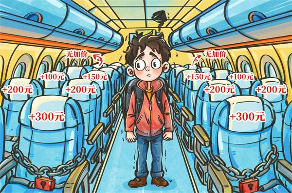 近年来,部分航空公司推行“锁座付费”套路,免费座位稀少且位置偏后,优质座位需额外付费,引发旅客的质疑和不满。有专家认为,这种将基本服务商品化、强制选择差座或加价的做法,损害消费者权益。相关监管部门应及时出台规范,防止不合理的服务分层成为行业“潜规则”;航空公司也应回归服务本质,以服务取胜,而非靠“锁座”牟利。漫画:程璨
