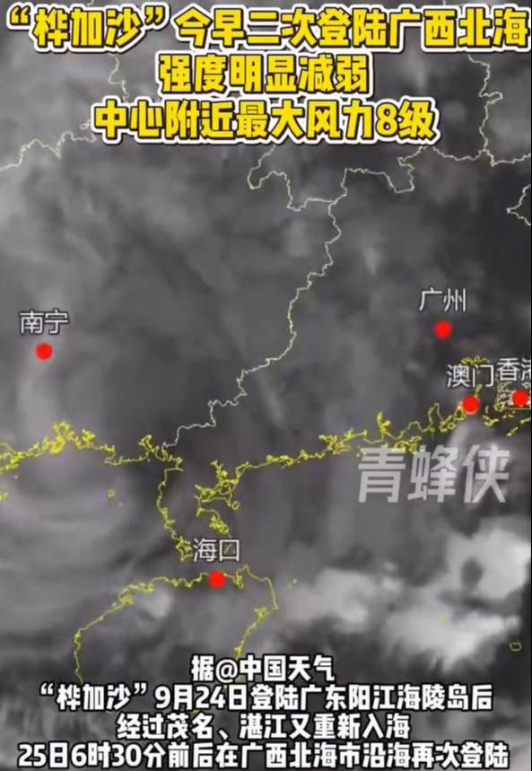“桦加沙”今早二次登陆广西北海:强度明显减弱,中心附近最大风力8级