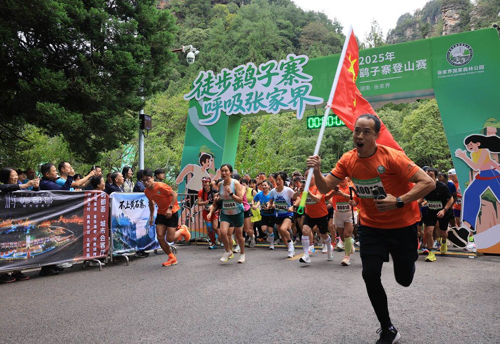 2025年9月27日,湖南张家界国家森林公园举办首届鹞子寨登山赛活动,吸引了2000名登山爱好者在风景如画的鹞子寨美景中共同体验徒步健身的乐趣。当日,“雪藏”十年的户外精华游览线鹞子寨重新对中外游客开放。