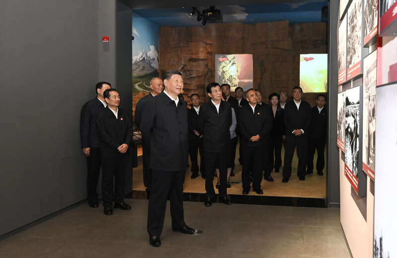 9月24日上午,习近平总书记来到新疆乌鲁木齐文化中心展览馆,参观新疆维吾尔自治区成立70周年主题成就展。