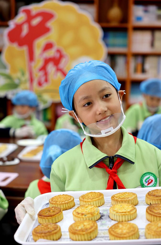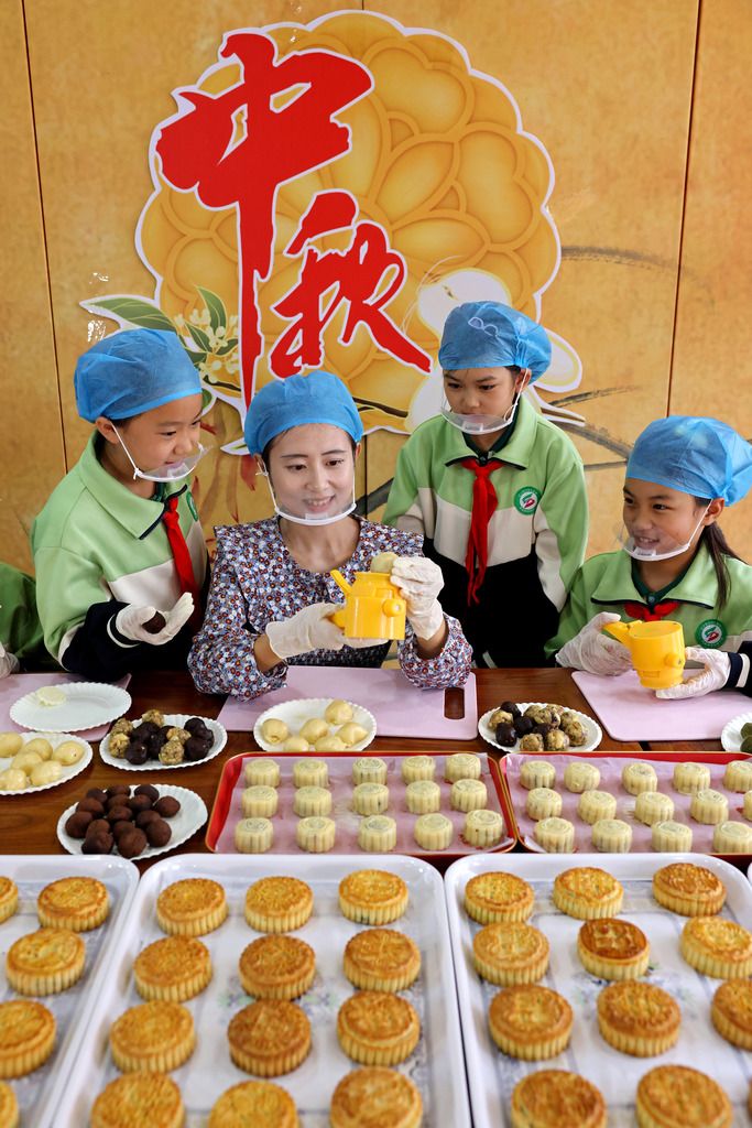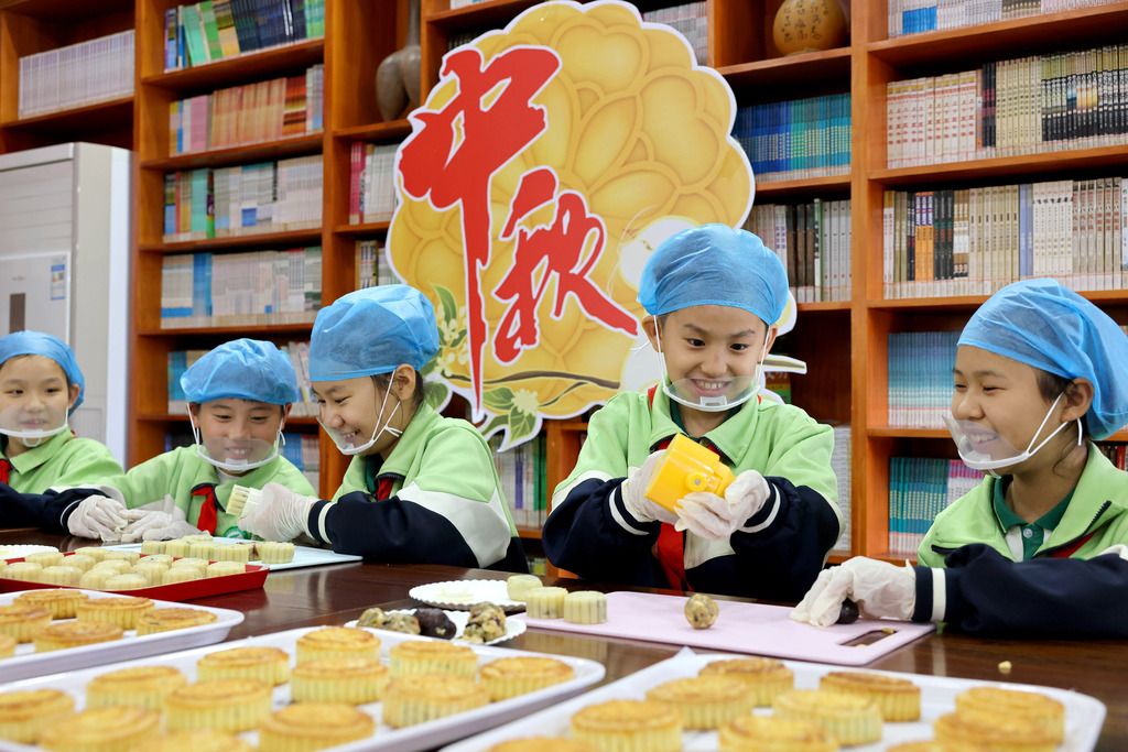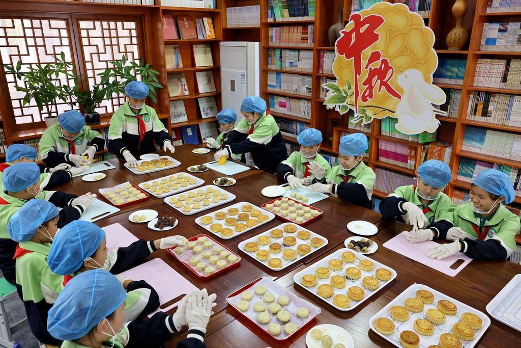 2025年9月28日,山东枣庄,市中区建设路小学开展“学做月饼 喜迎中秋”活动,学生们在老师的指导下学习制作月饼,感受传统文化的魅力,喜迎中秋佳节。