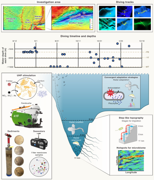 2020年2月,中国研发生产的“奋斗者”号载人潜水器完成了总装和陆上联调。同年 11月,“奋斗者”号在马里亚纳海沟成功达到最深处,坐底深度10909米。在此背景下,中国科学家果断决定启动去往马里亚纳海沟的科考航次,由上海交通大学、中国科学院深海科学与工程研究所、华大集团等多家单位联合主导的“溟渊计划”(马里亚纳海沟环境与生态研究计划,英文简称“MEER计划”)也应运而生,肖湘是联合发起人和召集科学家。