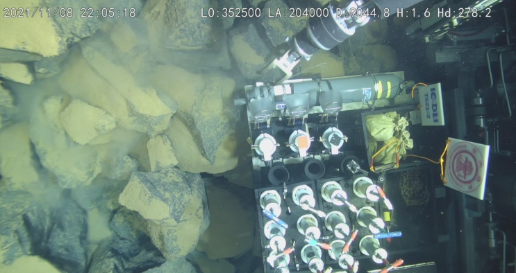 忙碌的不止赵维殳的眼睛。潜水器一侧,往下是“悬崖”,往上是峭壁,海沟如倒扣的山脉,但一阶一阶并不平整,“奋斗者”号在此爬出一段高差近八九百米的坡,伸出机械臂采样。赵维殳要负责采样计划,微生物样本用插入泥土的柱状工具收集;海葵等大一些的生物,放进生物箱;还有岩石,赵维殳的潜次捡到一块距今三百万年的玄武岩,被送给同航次的浙江大学地质学家吴涛做分析。