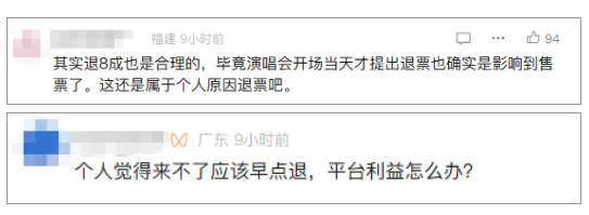 也有网友指出,退款80%是合理的,毕竟演唱会开场当天才提出退票也确实是影响到售票了。