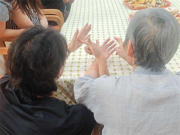 This is a cognitive intervention training specifically designed for elderly individuals with cognitive decline. In July 2025, the "Time-Collected Memory Camp" project was launched, creating a "memory protection" for over ten seniors with varying degrees of cognitive challenges. The cognitive issues referred todelaymemory loss, diminished thinking abilities, behavioral abnormalities,etc. The photo shows a volunteer guiding an elderly participant through hand gesture dance exercises.