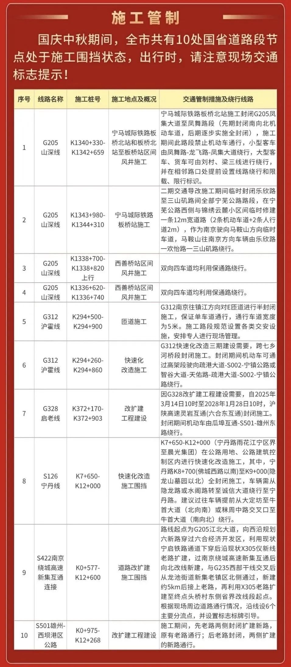 南京共有10处国省道路段节点