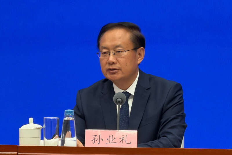 发布会上,孙业礼回答记者提问。中青报·中青网记者 刘昶荣/摄
