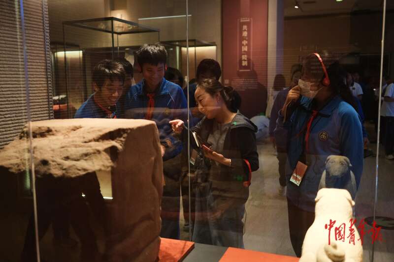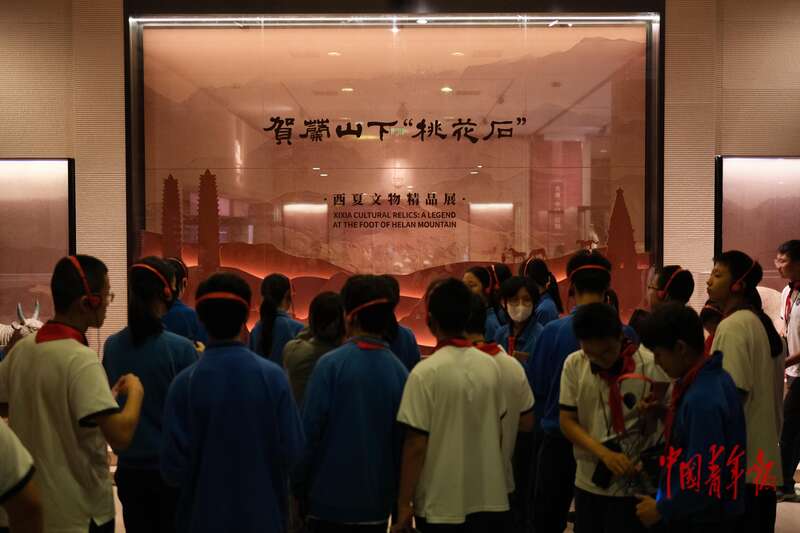 9月30日,北京首都博物馆“贺兰山下‘桃花石’——西夏文物精品展”现场,当日有不少中小学生前来观展。中青报·中青网记者 田嘉硕/摄