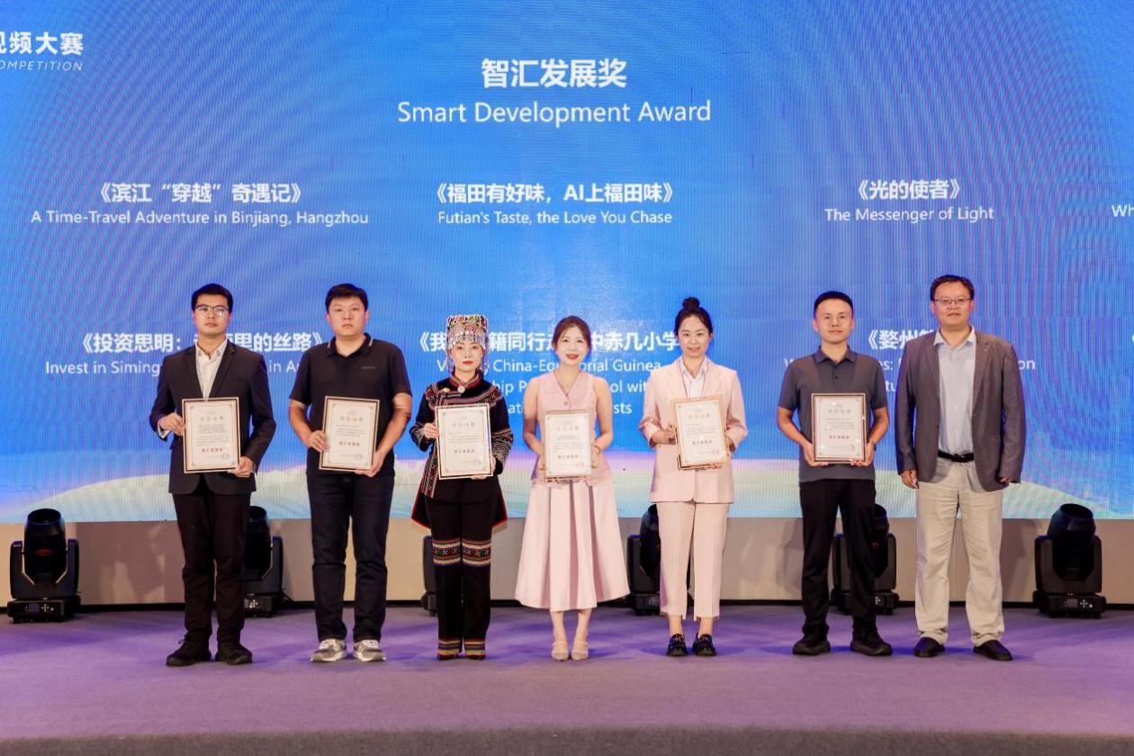 颁奖环节气氛热烈,各项大奖逐一揭晓。经大赛组委会初筛、大众投票与专家评审三轮专业遴选,《点亮未来的400万小时》《有朋自东方来》《城市心跳》《婺州笺》《幸遇中国》《风电探秘记》《方向的方,智慧的智》等161部作品最终脱颖而出,分别斩获10大赛道奖项、海外分赛区奖项与优秀作品奖,6家单位同步获评优秀组织奖。