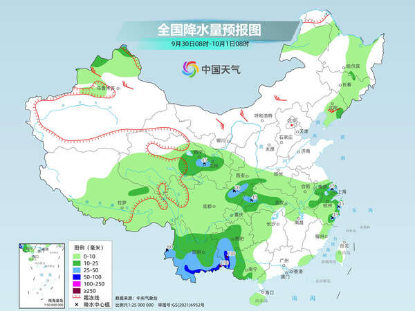 今天(9月30日),随着今年第20号台风“博罗依”减弱消散,广西、云南等地雨势也逐渐减弱,但局地仍有大暴雨。国庆中秋假期首日,我国降雨将再度发展,华西至黄淮局地有暴雨或大暴雨来袭,恰逢出行高峰,需防范道路湿滑和低能见度带来的不利影响。南方多地炎热持续,福建、浙江等地需警惕秋老虎,做好防暑措施。