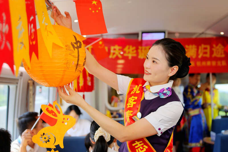 中国青年报客户端讯(中青报·中青网记者 李剑平 通讯员 王椰萍)9月26日至29日,杭州客运段在多趟高铁上,开展“月满山河 情满列车”文化主题活动,让飞驰的高铁变身为传递旅途温情的 “文化驿站”。
