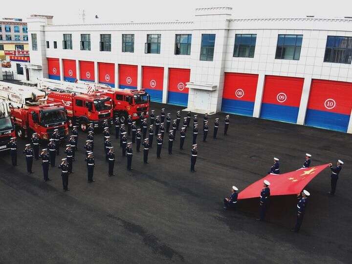 在海拔4500米的西藏那曲市区,市消防救援支队的指战员们簇拥今年获赠的、曾在天安门广场升起的国旗。指战员们双手托举旗角,深情展开鲜红的旗帜。“守护好雪域高原,就是我们献给祖国最好的礼物!”政治工作科科长陈林带领指战员们在国旗下敬礼,将对祖国的祝福融入庄重的仪式中。