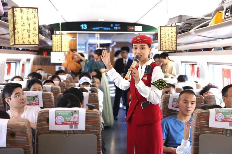“当唐诗在车厢里响起,当家国情怀在旅途中传递,我们看到了文化传承的力量。这是铁路服务与文化传播的深度融合,我们将继续探索创新。”西安客运段列车长刘晨说。