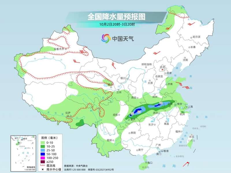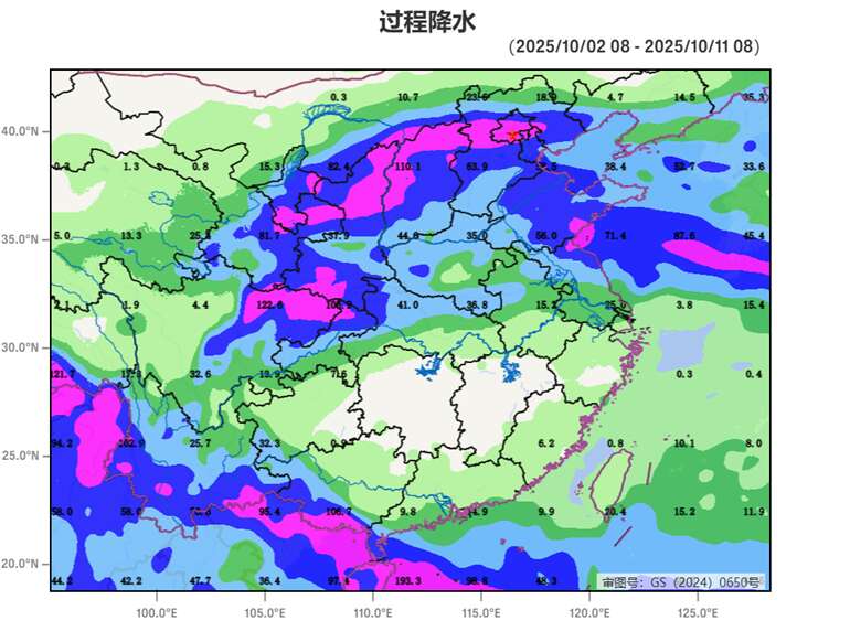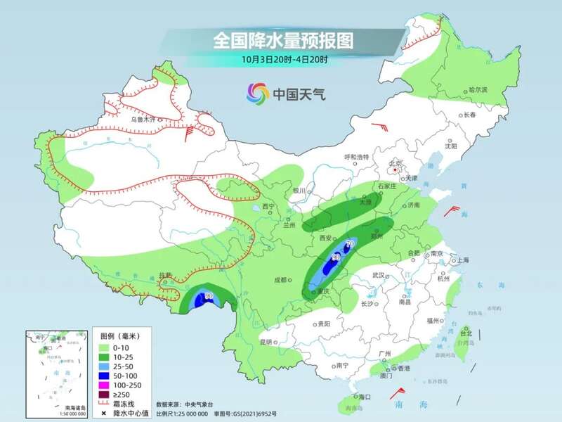 预计10月2日至5日,华西地区、黄淮等地多降雨,累计降雨量50-80毫米,部分地区100-160毫米,四川东北部、陕西南部局地可超250毫米,最大小时雨量20-40毫米,局地超50毫米,局地有雷暴大风等强对流天气。