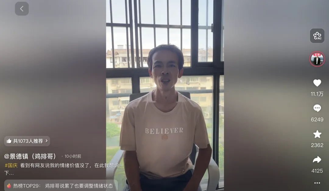 10月3日,“鸡排哥”在个人社交账号发布视频回应: