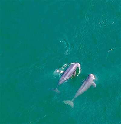 近年来,长江水质不断提升,部分重点保护物种数量上升。图为在湖北宜昌葛洲坝下游二江水域拍摄到的长江江豚。