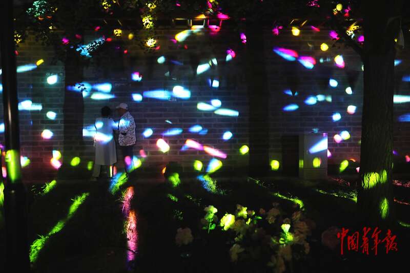 10月6日,北京月坛公园内,灯光萦绕。中青报·中青网记者 陈剑/摄