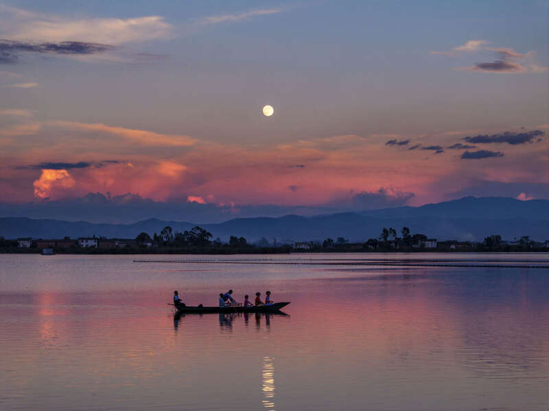 ↑云南大理洱源西湖 新华社发(罗新才摄)