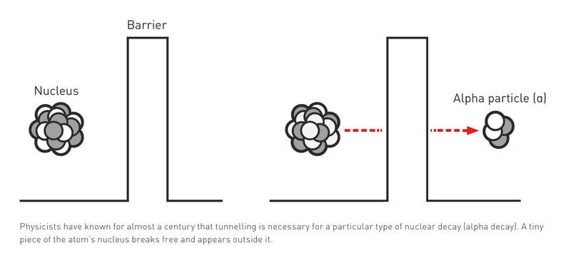 隧穿是一个量子力学过程,这意味着随机性起着作用。不同类型的原子核势垒高度和宽度各不相同,因此有的衰变缓慢,有的更容易发生。