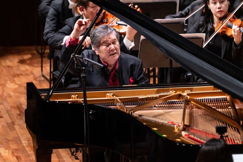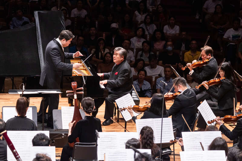 84岁高龄的钢琴大师殷承宗与广州交响乐团合奏钢琴协奏曲《黄河》。受访者供图