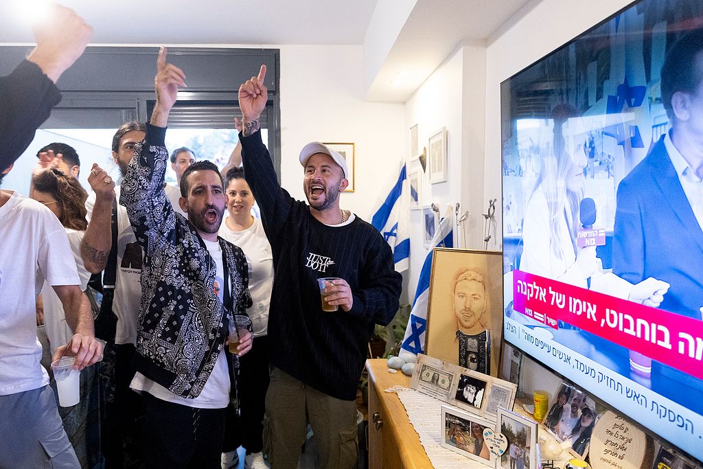 以色列人观看被扣人员获释直播