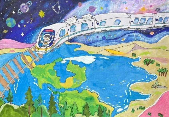 回到家,我迫不及待地把今天的冒险画在了新买的素描本上。会跳舞的油菜花、打喷嚏的大山、对我眨眼睛的老车站……晚上,我做了一个甜甜的梦,梦见我的小床变成了一列彩色火车,“咔嚓咔嚓”地带着我继续在祖国的故事书里旅行。