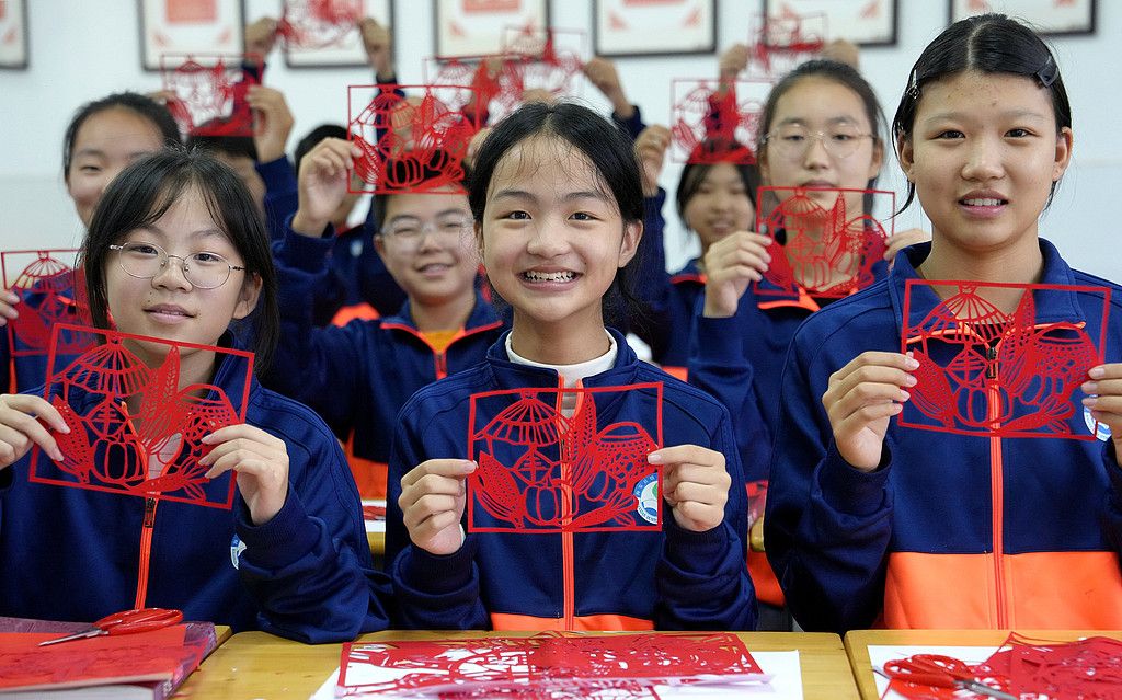 江苏海安:学生巧手剪纸迎“世界粮食日”