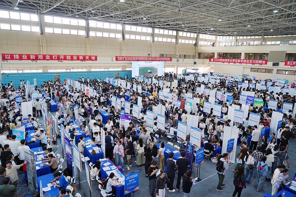 2025年10月16日下午,杭州,浙江省2026届高校毕业生首场秋季招聘会——“浙里有才”浙江省山区海岛县专场招聘会在浙江农林大学举行。本次招聘会提前在网上公布了用人单位和招聘岗位数,很多求职学生都抱着明确的求职目标过来应聘,实现了用人单位和求职学生“双向奔赴”,让本次招聘会更加务实高效。