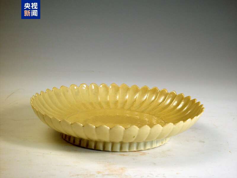 再来看这一款米黄釉菊瓣盘