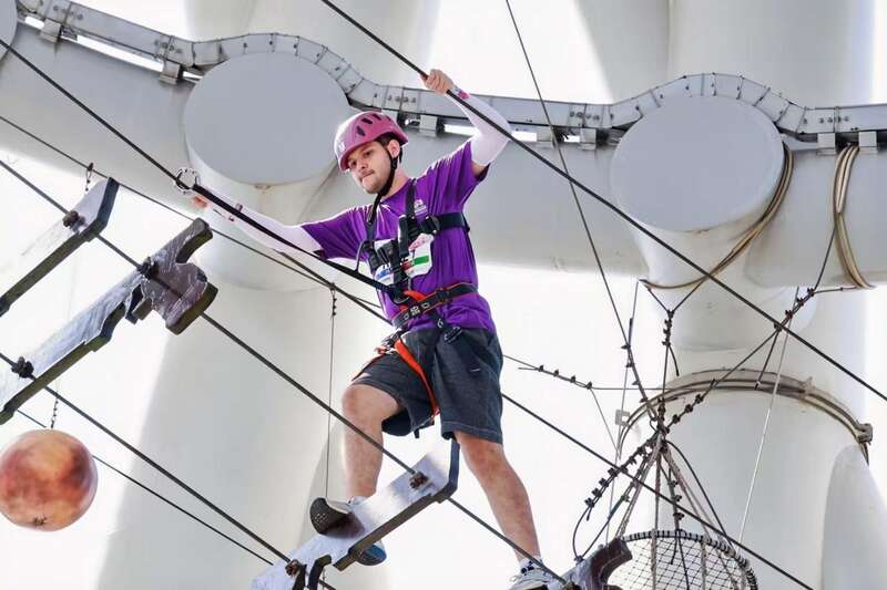 阿尔法凌空探险赛道于10月18日开赛,来自阿尔及利亚、巴西、巴基斯坦、俄罗斯、蒙古、委内瑞拉、越南、意大利、印度尼西亚、中国10个国家的45名选手参与高空竞技,这也是该赛道首度迎来国际选手。赛道设置于广州塔33层至58层之间,设有绿线、蓝线与红线3条不同难度路线。其中红线赛道高达298米,是全球少有的超高空高塔绳索探险项目,由郑钦泽、郑彩环、董燕梅3位选手组成的队伍,以10分17秒的总成绩夺得红线冠军。