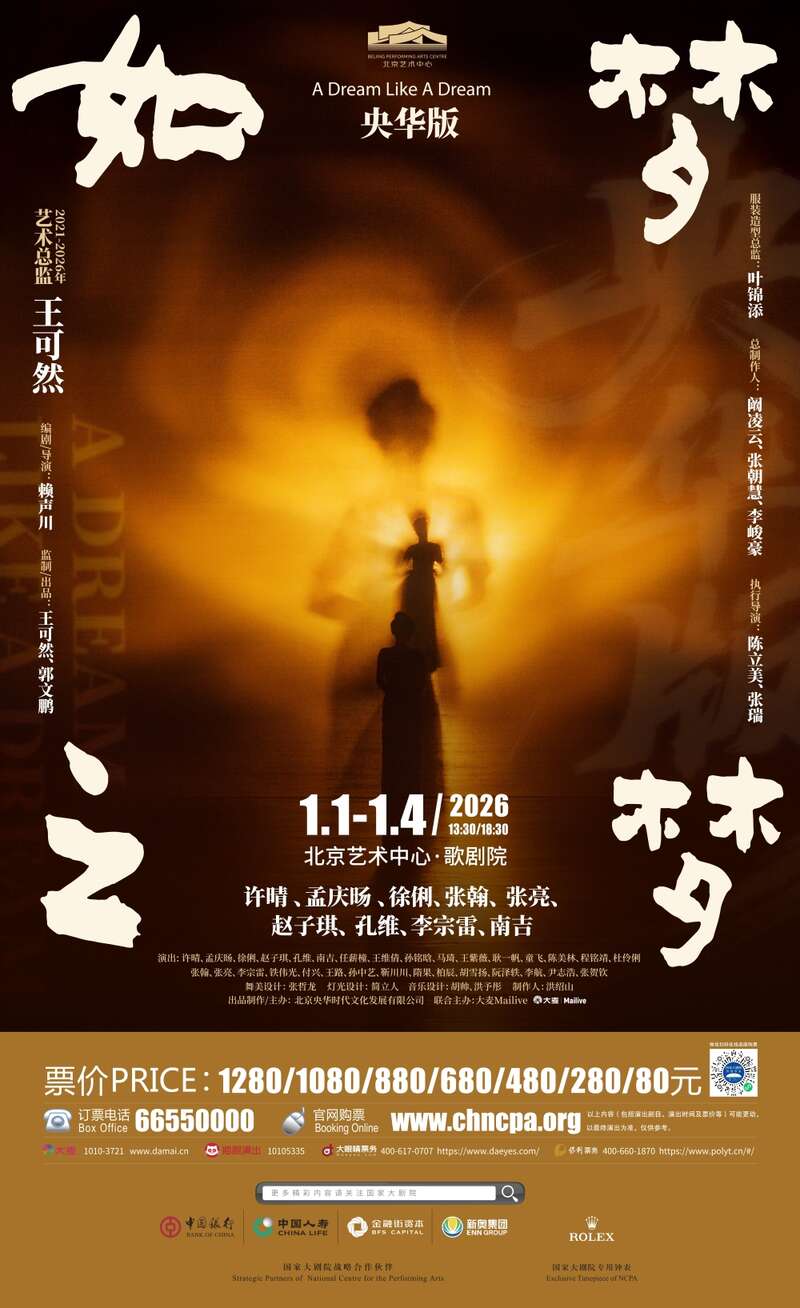 中国青年报客户端讯(中青报·中青网记者 蒋肖斌)中国当代剧场经典——央华版《如梦之梦》,将于2026年迎来终极谢幕演出,2026年1月1日-4日在北京艺术中心·歌剧院率先上演,目前已经开票,之后将巡演至杭州、宁波、南京、武汉等地。