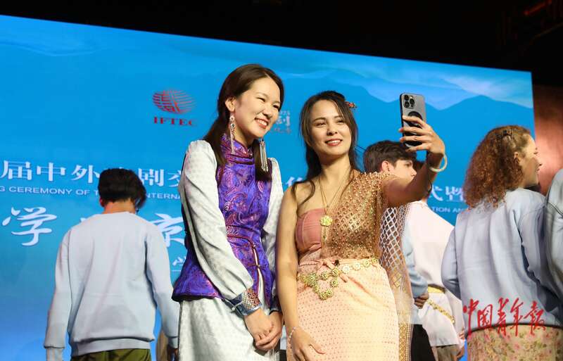 10月26日,北京正乙祠戏楼,“留学北京·情系中轴”北京高校国际学生嘉年华结束后,外国留学生合影留念。中青报·中青网记者 陈剑/摄