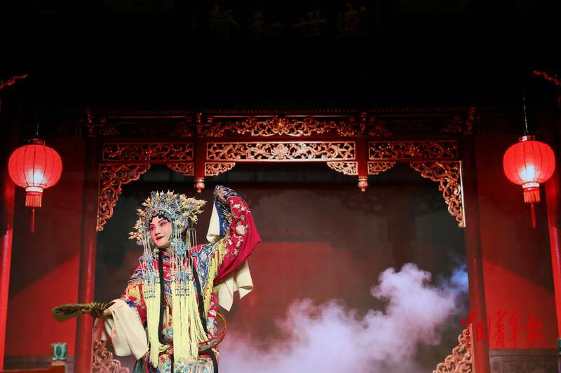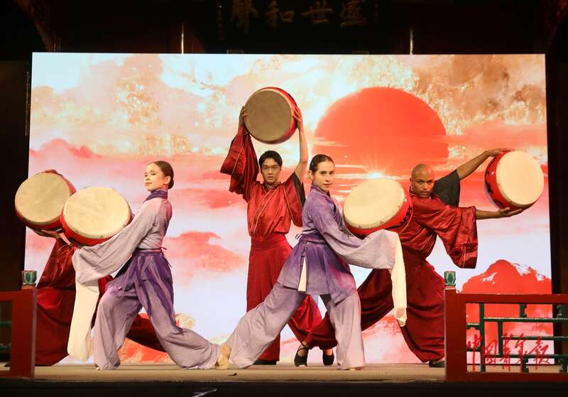 10月26日,北京正乙祠戏楼,来自北京舞蹈学院的外国留学生在表演舞剧《礼乐大同——中轴线上的华夏乐舞》。中青报·中青网记者 陈剑/摄