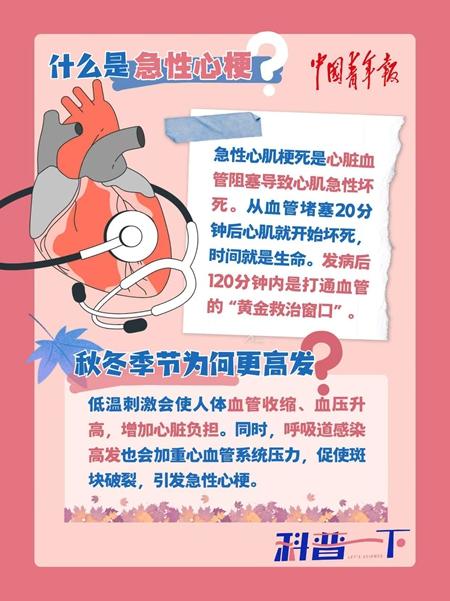 秋冬季也是呼吸道疾病高发期,感冒、肺炎等感染性疾病会对心血管系统造成间接伤害。“炎症状态下,心脏血管的内皮功能变得不稳定,斑块破裂风险增加,急性心梗的风险也随之上升。”杨柳补充道。