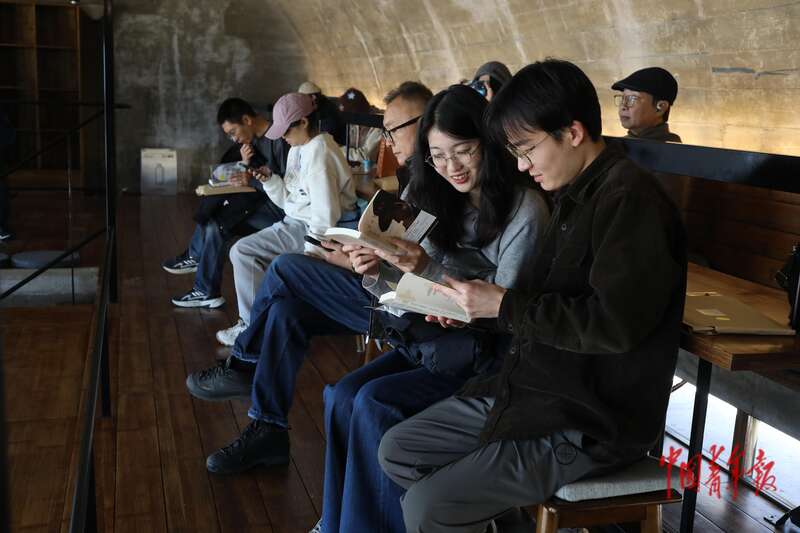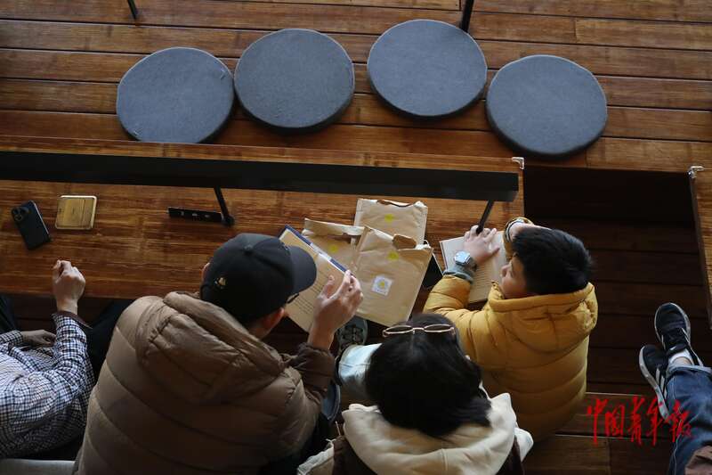 10月26日,河北秦皇岛孤独图书馆,年轻人们在阅读图书“盲盒”。中青报·中青网记者 孔斯琪/摄
