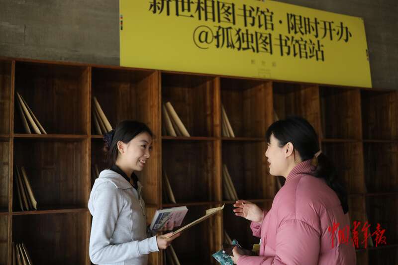 10月26日,河北秦皇岛孤独图书馆,年轻人们在“新世相图书馆”借阅图书“盲盒”时相互交流。中青报·中青网记者 孔斯琪/摄