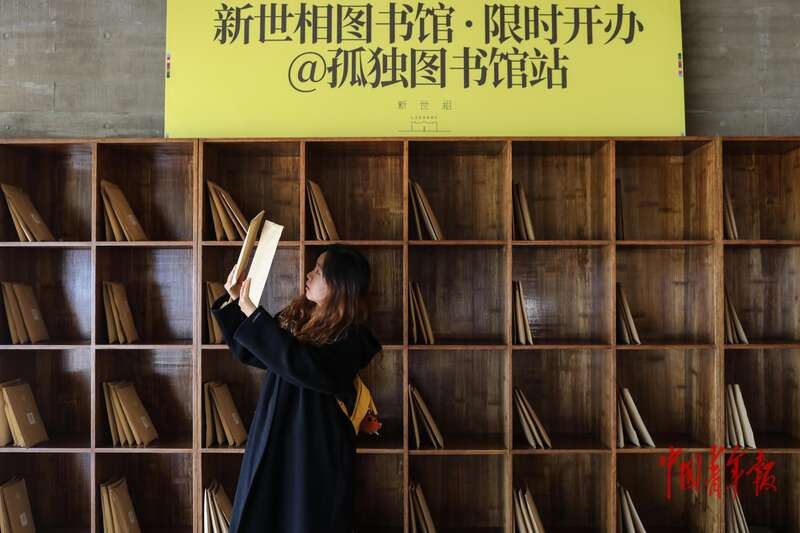 10月26日,河北秦皇岛孤独图书馆,参观者们在“新世相图书馆”借阅图书“盲盒”。中青报·中青网记者 孔斯琪/摄