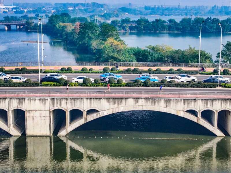 赛道旁风景如画。蚌埠马拉松组委会供图