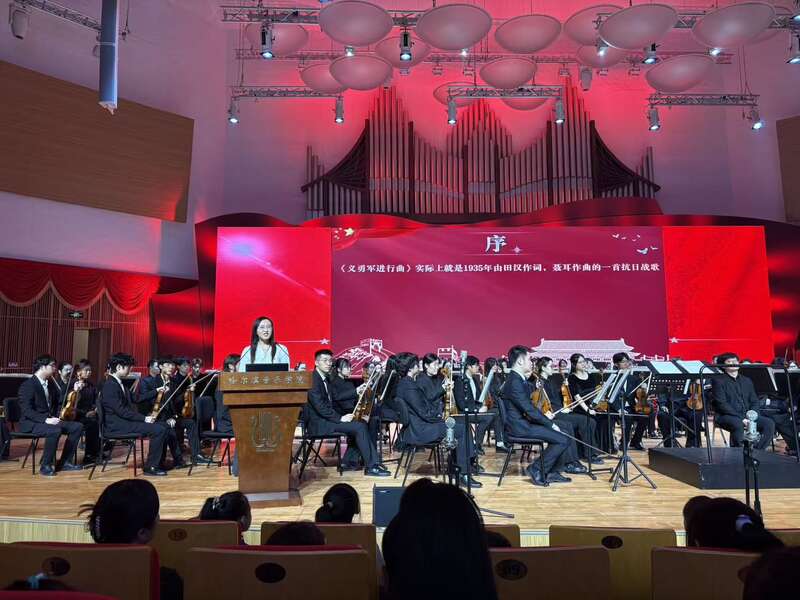 中国青年报客户端哈尔滨11月5日电(中青报·中青网记者 杨雷)11月5日,在团黑龙江省委指导下,哈尔滨音乐学院举办了“抗战乐章 和平交响”纪念中国人民抗日战争暨世界反法西斯战争胜利80周年主题团课暨音乐大思政课,600余人参加。