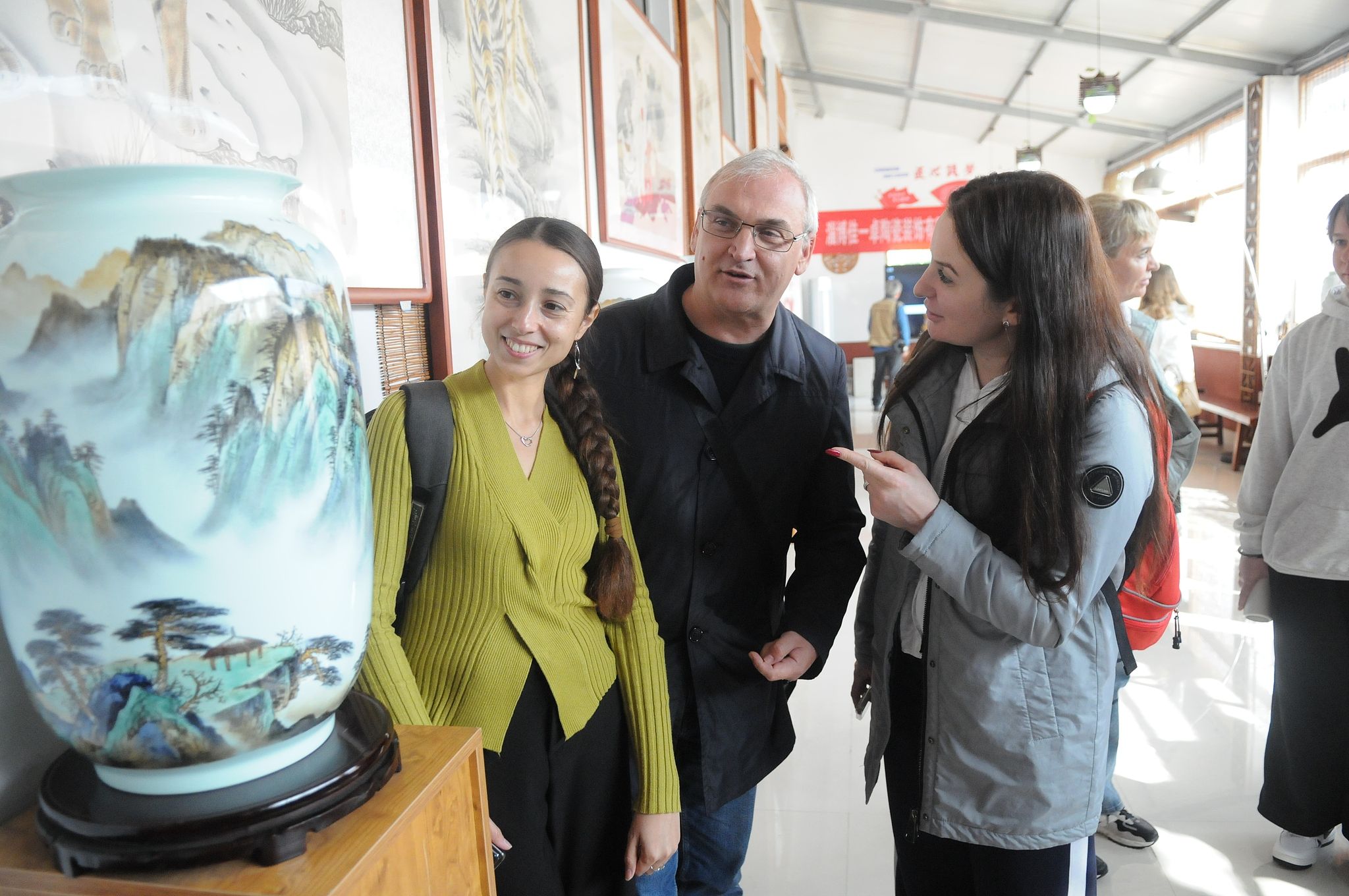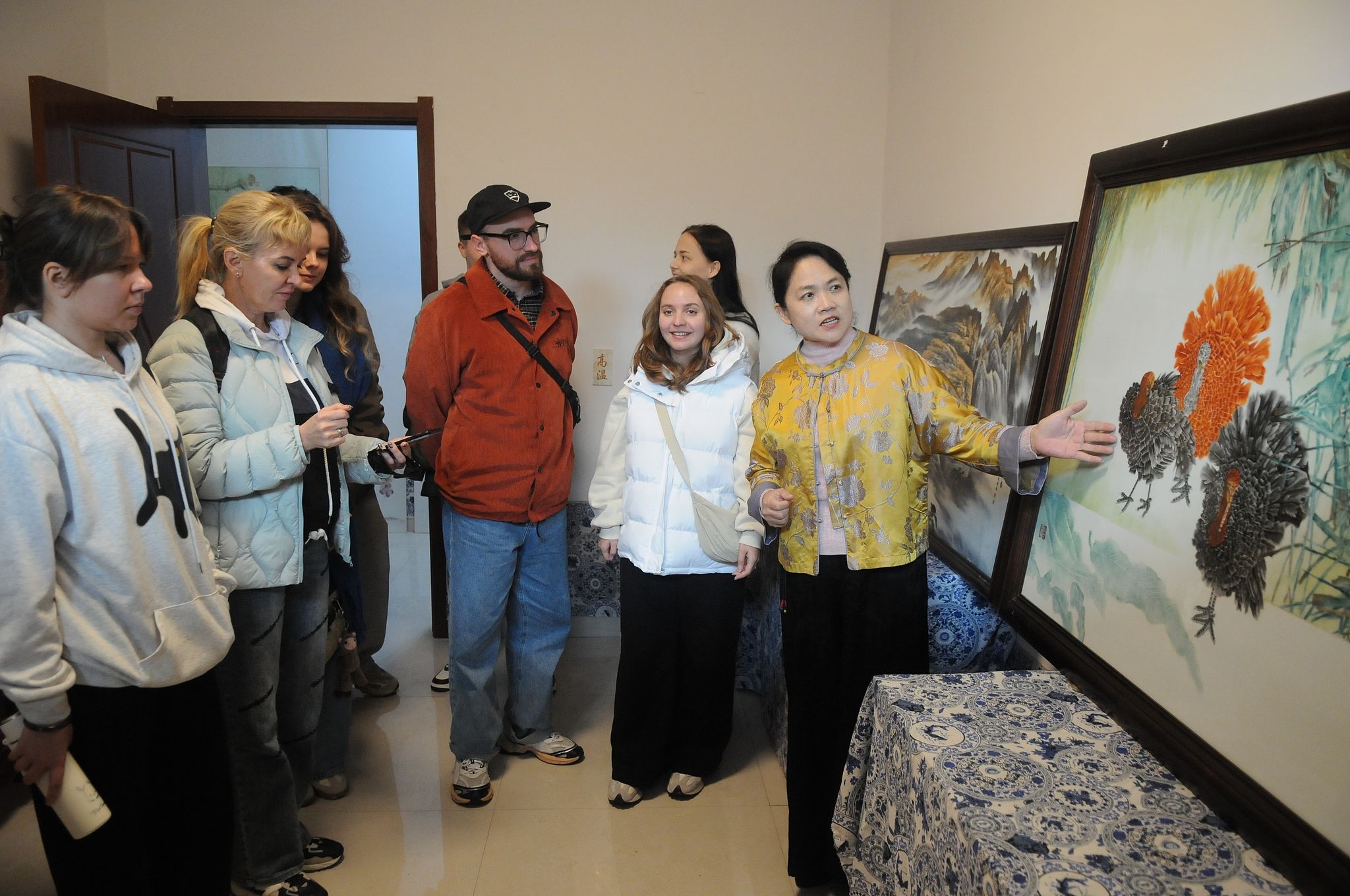 2025年11月1日,山东淄博,山东交通学院顿河学院师生在孙佳陶瓷文化馆参观学习。 当日,山东交通学院顿河学院大学生实训基地正式落户淄博孙佳陶瓷文化馆,来自俄罗斯的外教及中俄师生70多人,详细了解了陶瓷琉璃艺术。淄博孙佳陶瓷文化馆是山东省工艺美术大师孙佳创立的,28年来根植淄博,在陶瓷彩绘、瓷板画及琉璃艺术领域蜚声海内外。顿河学院是山东交通学院与俄罗斯顿河大学联合成立的,为中俄学术艺术交流搭建起了平台。据悉,学院将不定期派学生前往陶瓷馆开展研学。