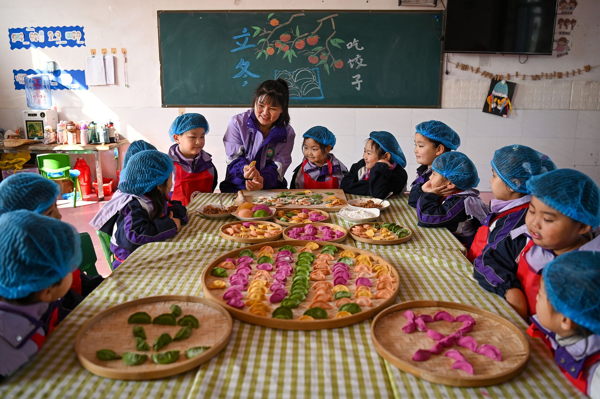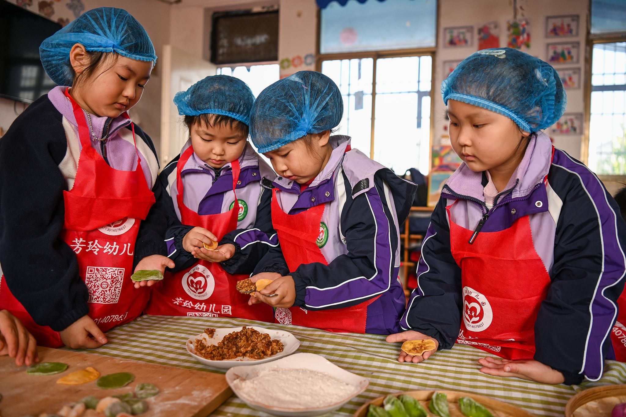 安徽亳州:幼儿园“萌娃”包饺子迎立冬节气
