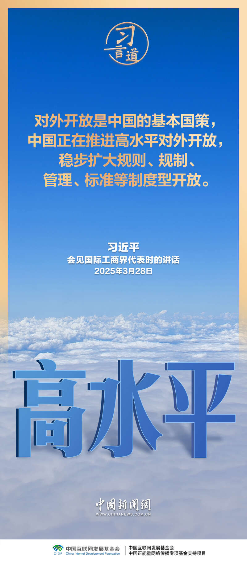 开放是人类文明进步的重要动力,是世界繁荣发展的必由之路。习近平总书记多次就坚定不移推进高水平对外开放发表重要论述,强调“中国对外开放的大门不会关闭,只会越开越大”。