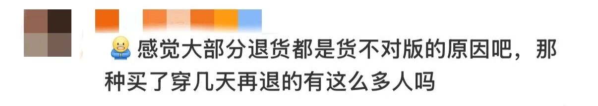 也有网友认为,退货率高是因为服装货不对板,这样的举措影响试穿体验。