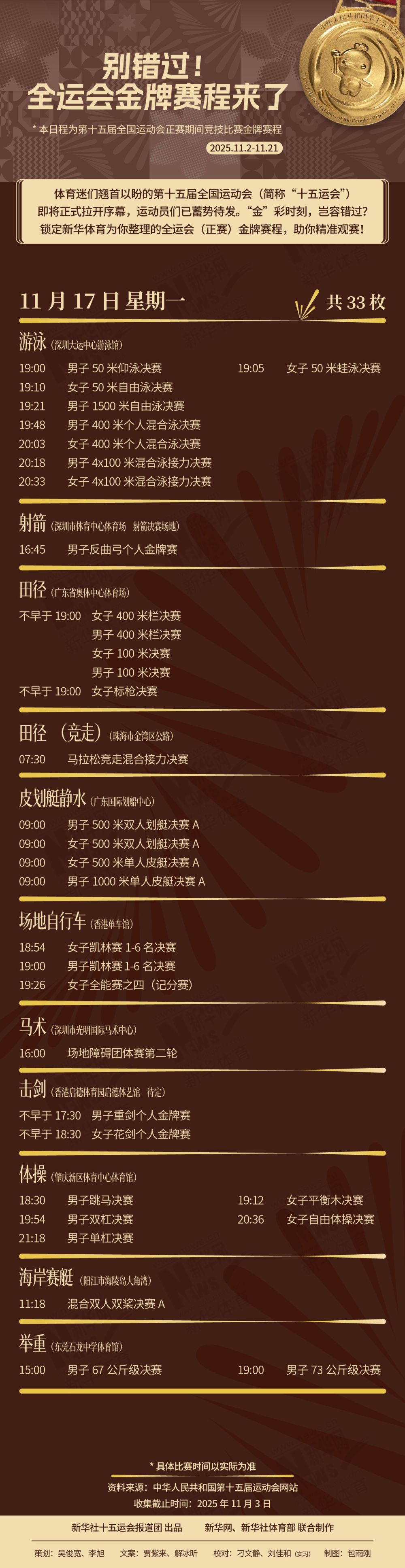 别错过!这届全运会金牌赛程来了