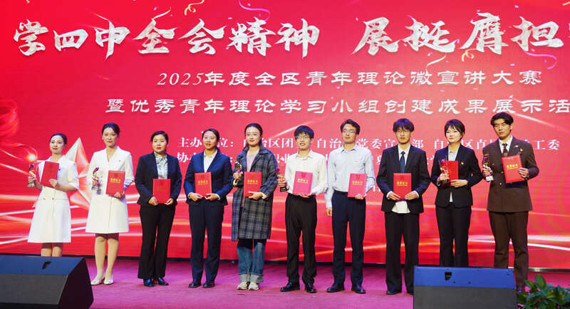 中国青年报客户端讯(刘媛 中青报·中青网记者 焦敏龙)11月6日,共青团宁夏回族自治区委联合宁夏回族自治区党委宣传部、区直机关工委,在银川市举办2025年度全区青年理论微宣讲大赛,同期展示优秀青年理论学习小组创建成果。宁夏职业技术大学(宁夏开放大学)承办此次活动。来自宁夏各机关、高校、企业的近200名团员青年现场观看比赛。比赛决出一等奖1名、二等奖2名、三等奖3名、优秀奖4名。