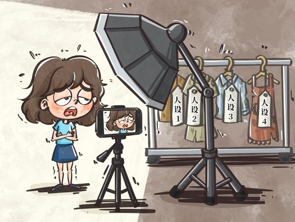 近日,某平台一则“大型科技公司前首席女技术黑客直播卖课”视频,凭“稀缺人设”迅速引发热议。摆拍悲情、打造虚假人设引流卖课,已成部分账号的“起号套路”,目的是先蹭热度导流私域,再带货牟利。相关平台亟须完善审核、强化监测与惩处,清理虚假营销,让课程回归价值、直播回归真诚。漫画:程璨