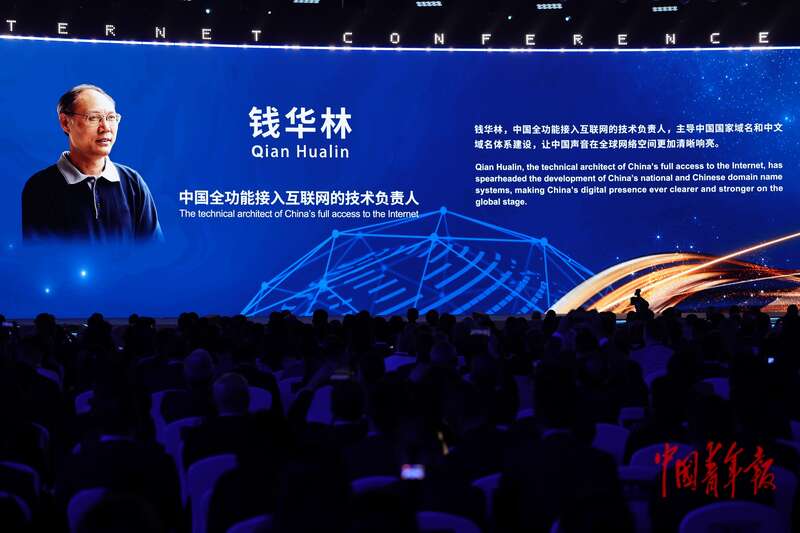 11月7日,浙江乌镇,2025世界互联网大会开幕式上,钱华林荣获2025世界互联网大会杰出贡献奖(个人)。陈思阳/摄